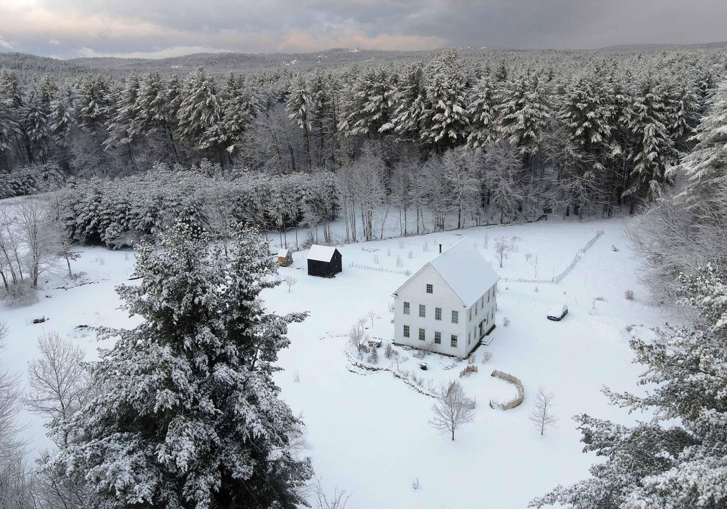 In 2018 we built a 30x38 foot house among some overrun haying fields. Our chief design considerations were to make something that had all the qualities we loved about old houses, while remaining within a fairly limited budget. Here’s what it looks like today: