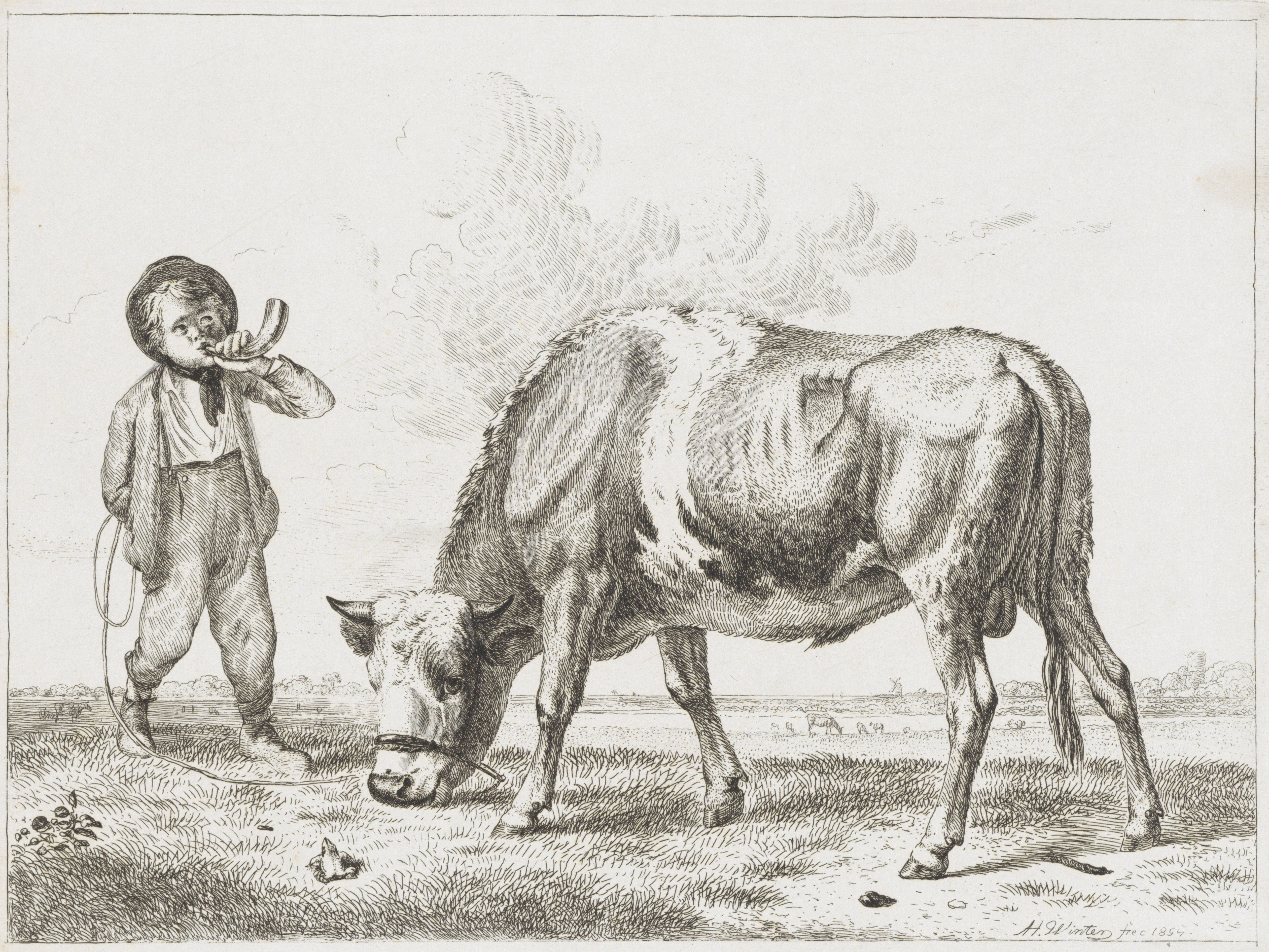 The etching is titled Cowherd, by Abraham Hendrik Winter, 1854